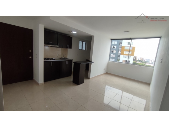 Arrienda apartamento en un noveno piso., el àrea privada de 54.34 MT2 .Comprende: Sala-comedor, Tres(3) alcobas,la principal con closet y baño, cocina semi-integral, àrea de ropas, gas domiciliacion, parqueadero para carro. El conjunto tiene los servicios de ascensor, piscina adultos y niños, salòn social. E conjunto se encuenta ubicado en un sector con buen flujo vehicular, cerca a supermercados,colegios, universidades, Parroquias.